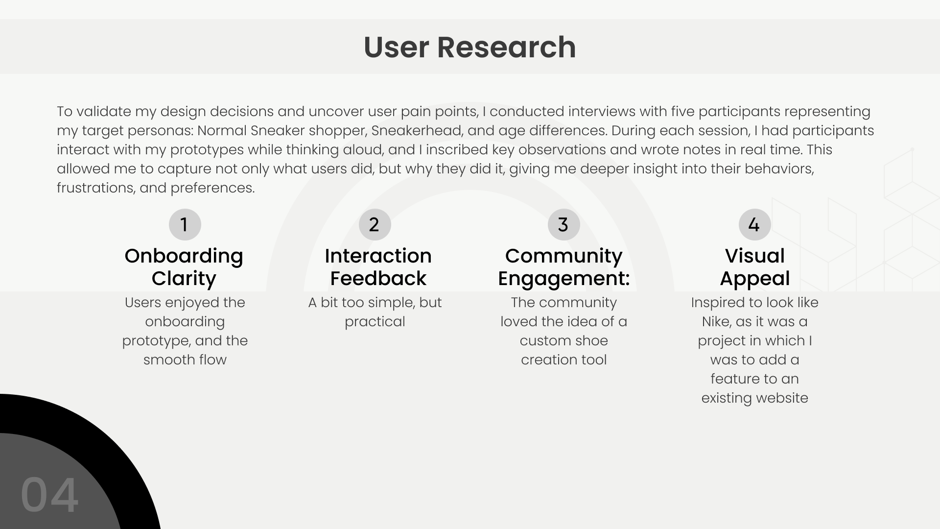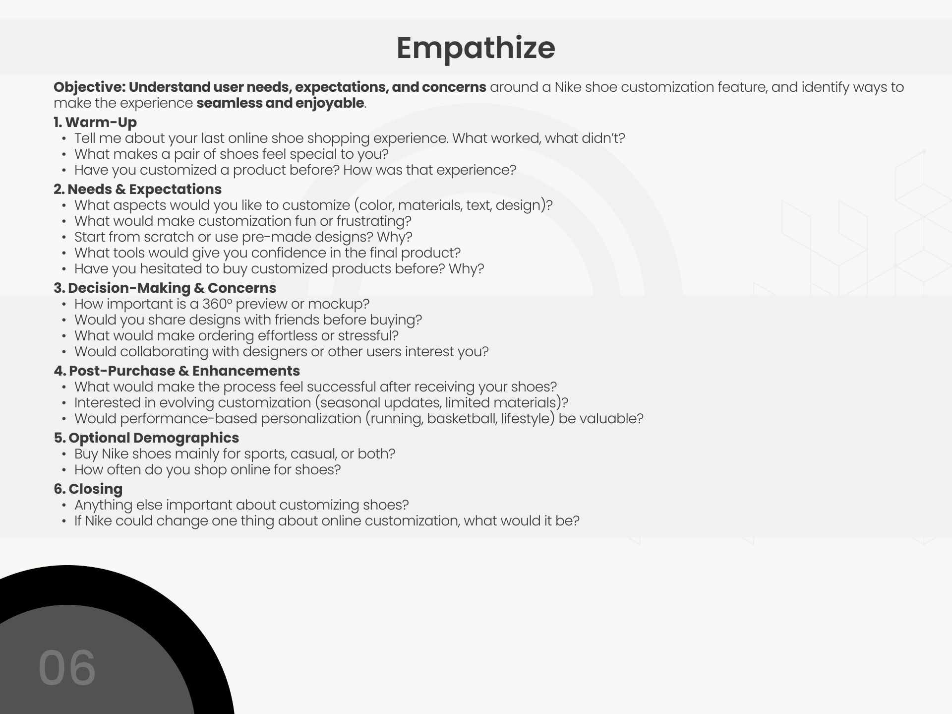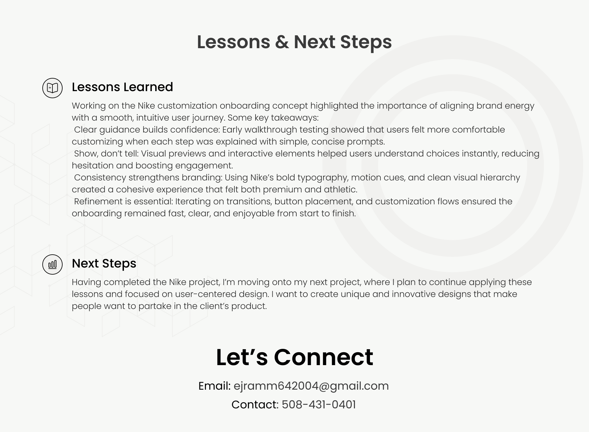 Nike Shoe Customization ConceptBy Ethan Ramm Link here:https://www.figma.com/board/ppTBUlxHOkKfceQJSJThEo/Untitled?node-id=0-1&t=GeKaLxmHC4wCK9Qm-1 Link to file:https://www.figma.com/board/WKmdDPrzfyBkFq4780os2d/Untitled?node-id=0-1&t=rHGAC03Z18vvWU7V-1 Link to file:https://www.figma.com/design/beScEZ1AGYBl6nvwOp8gA9/Untitled?node-id=0-1&t=7WAFzX31gFiudBXX-1 Link to prototype:https://www.figma.com/proto/beScEZ1AGYBl6nvwOp8gA9/Untitled?node-id=0-1&t=7WAFzX31gFiudBXX-1